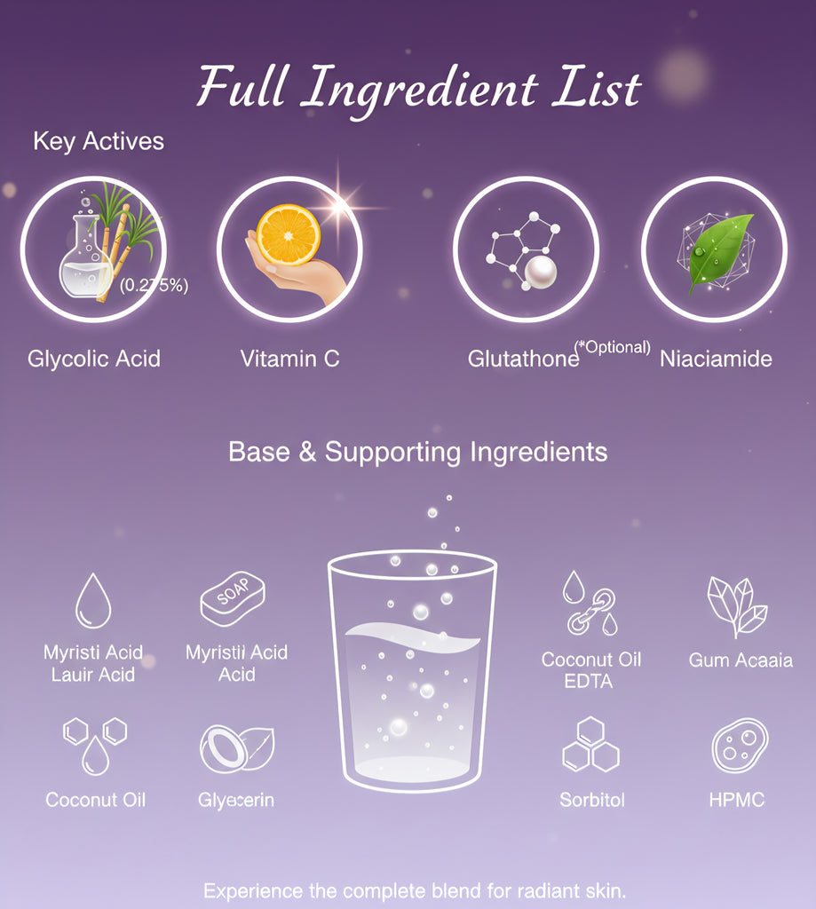 Glycolic Acid (0.275%) – Gently exfoliates and brightens
