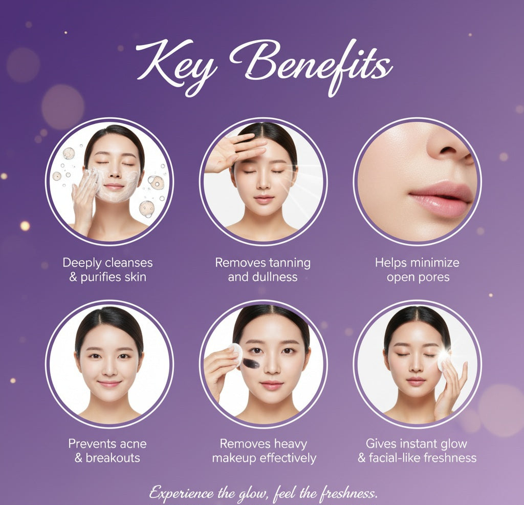 It works like a mini facial at home, helping to reduce tanning, minimize open pores, prevent pimples, and improve overall skin texture with regular use.
